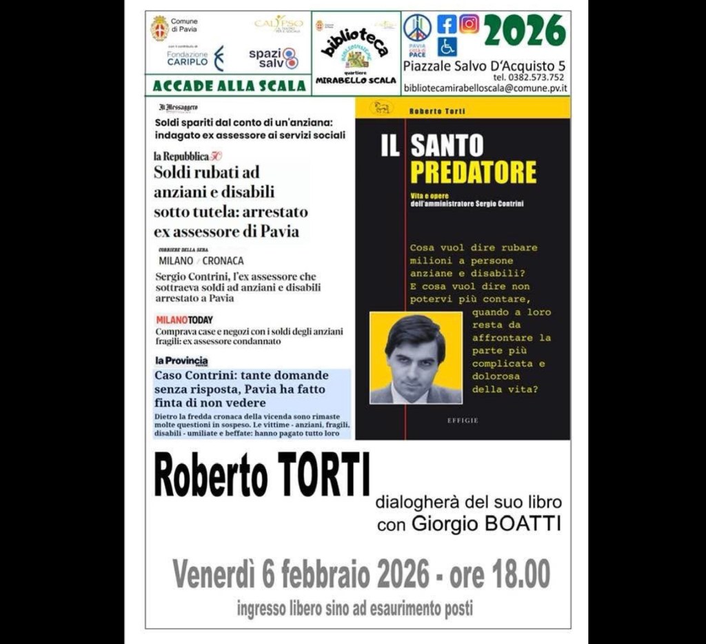 Il fatto di cronaca a cui il libro di Torti si riferisce – la condanna a dieci anni di carcere all’ex-assessore ai servizi sociali di Pavia, ed ex-presidente del Pertusati e del Santa Margherita, per la sistematica spogliazione dei beni di decine persone fragili a lui affidate, in qualità d amministratore di sostegno – è troppo noto perché ci si debba ancora soffermare.