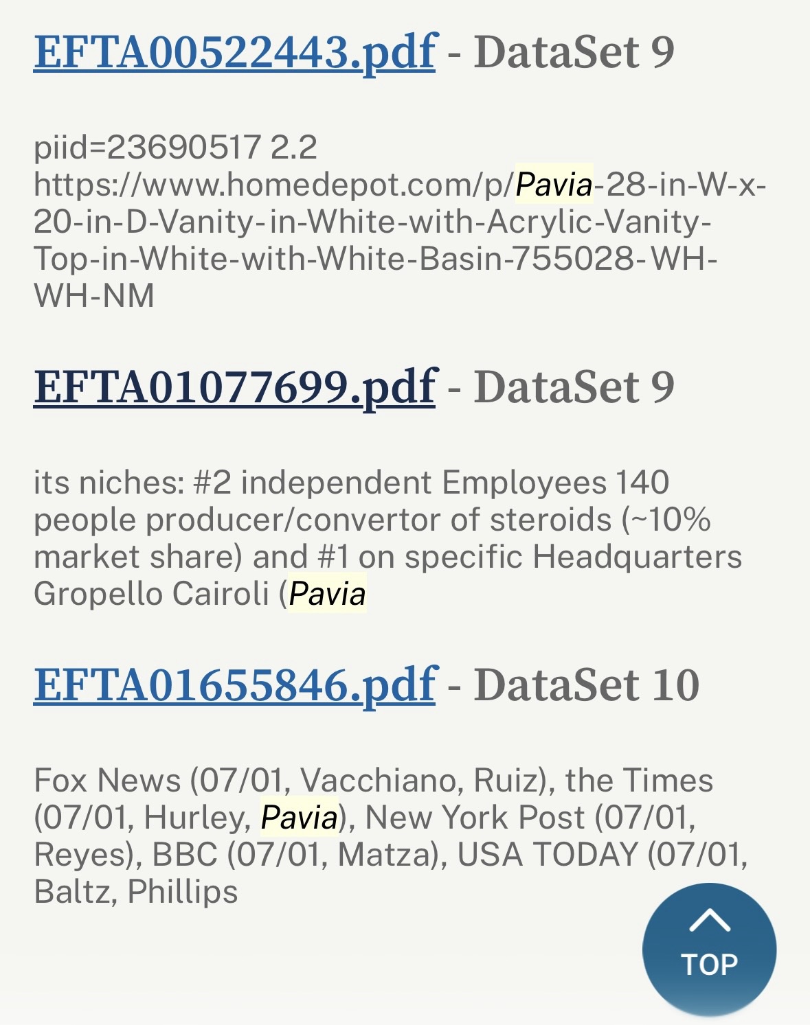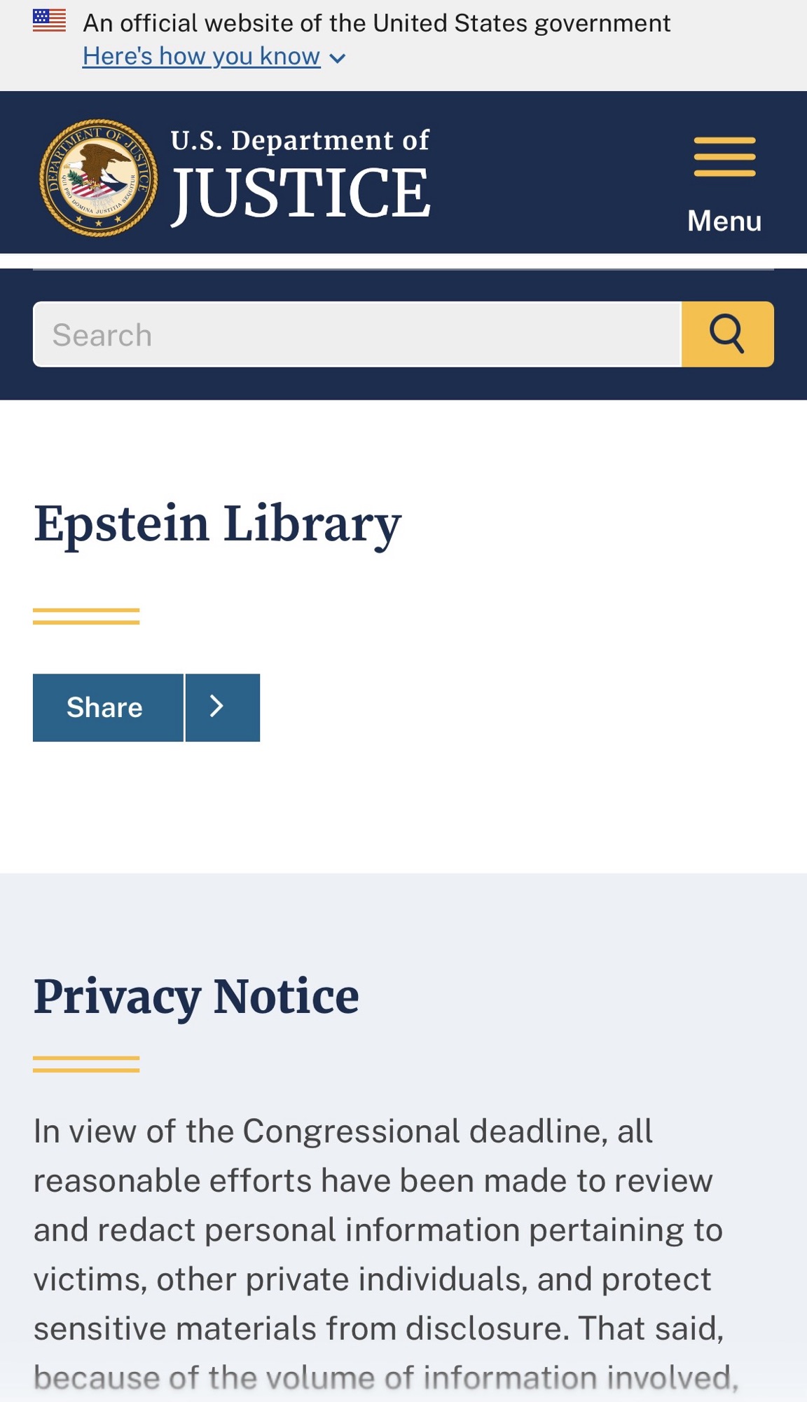 Indice sul sito del dipartimento di giustizia americano: