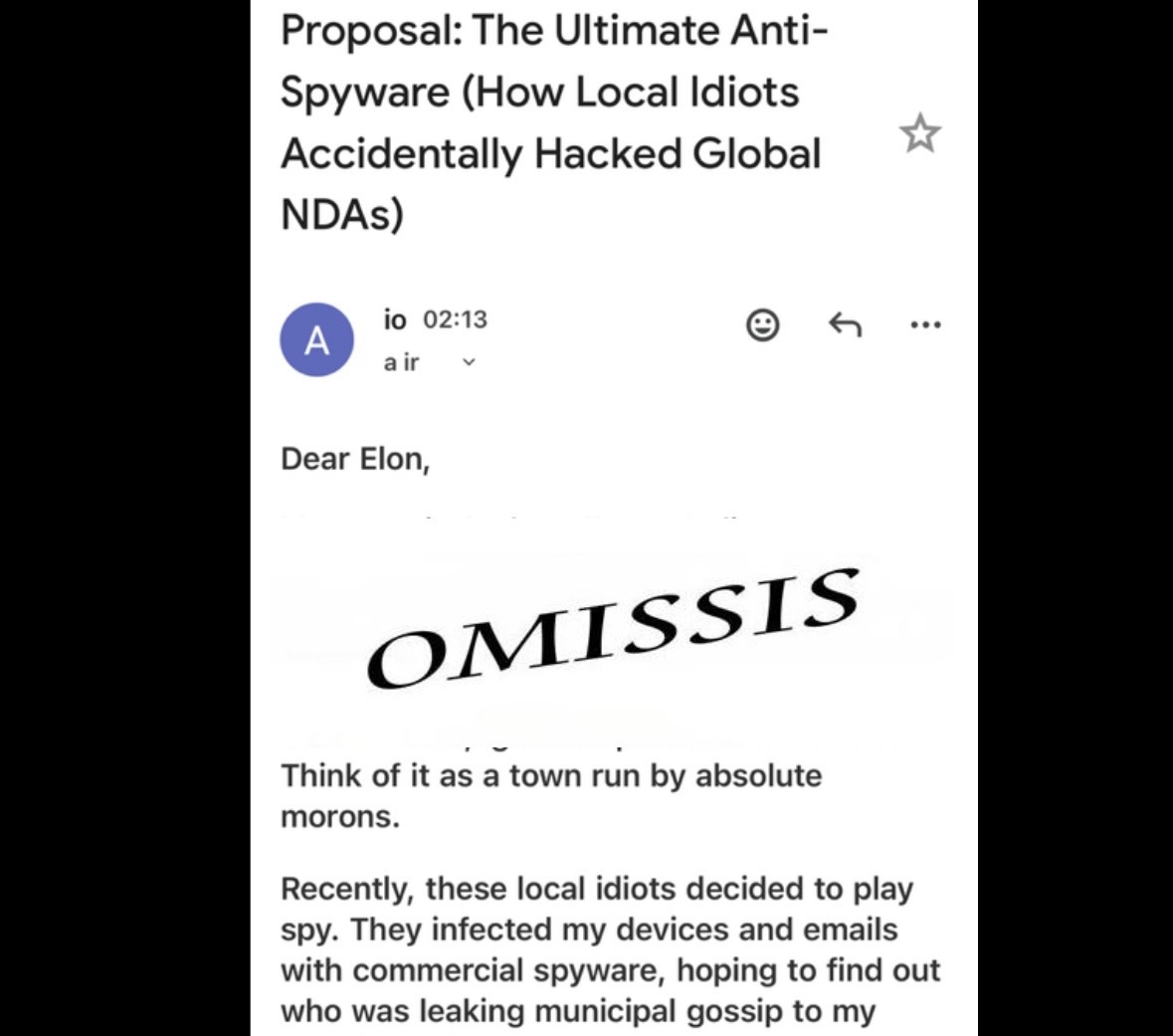 Dalla casella mail più spiata della Lombardia, è partita una missilata notturna.