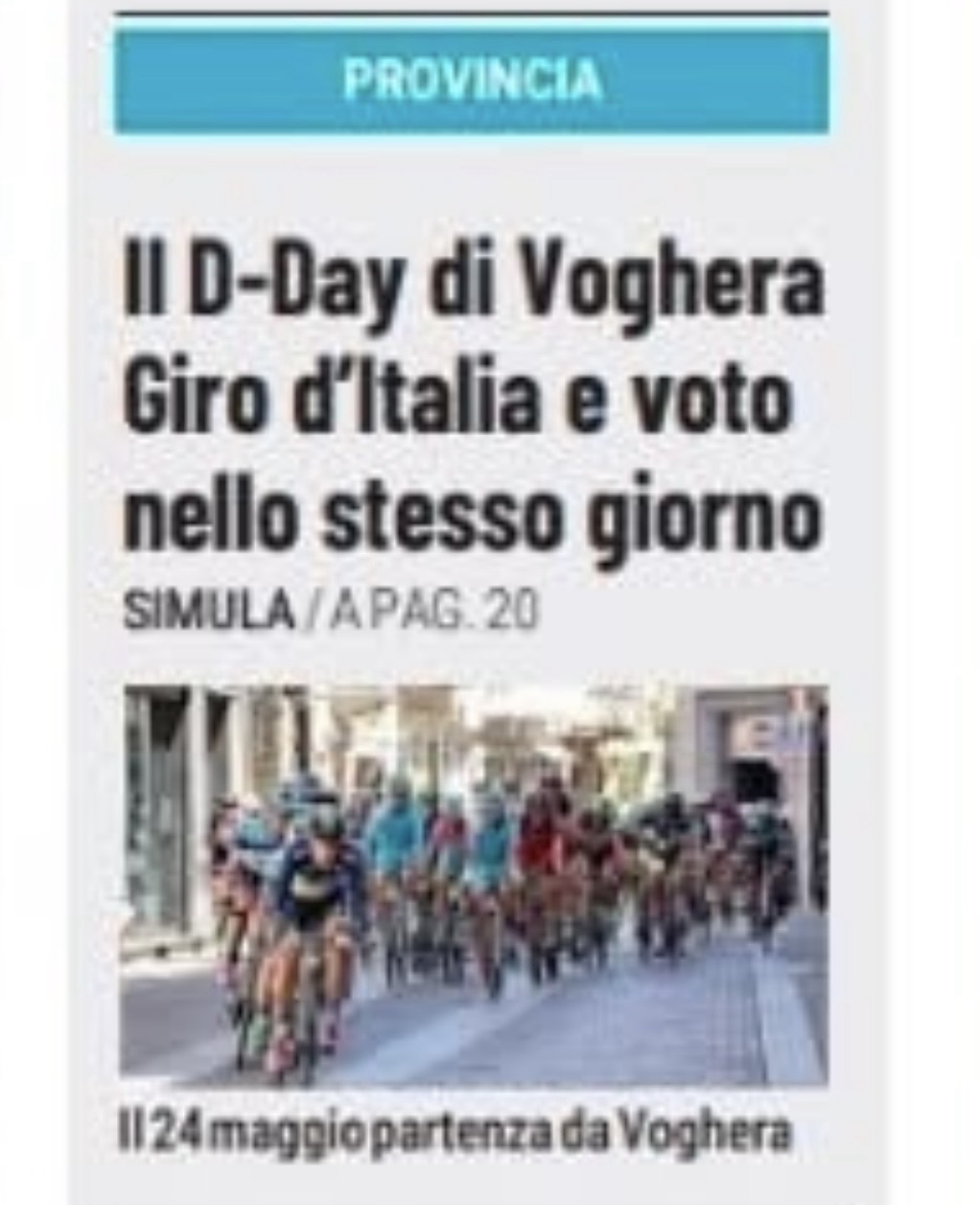 Tappa del giro a Voghera, vanificata. Sì partirà lo stesso giorno delle elezioni.
