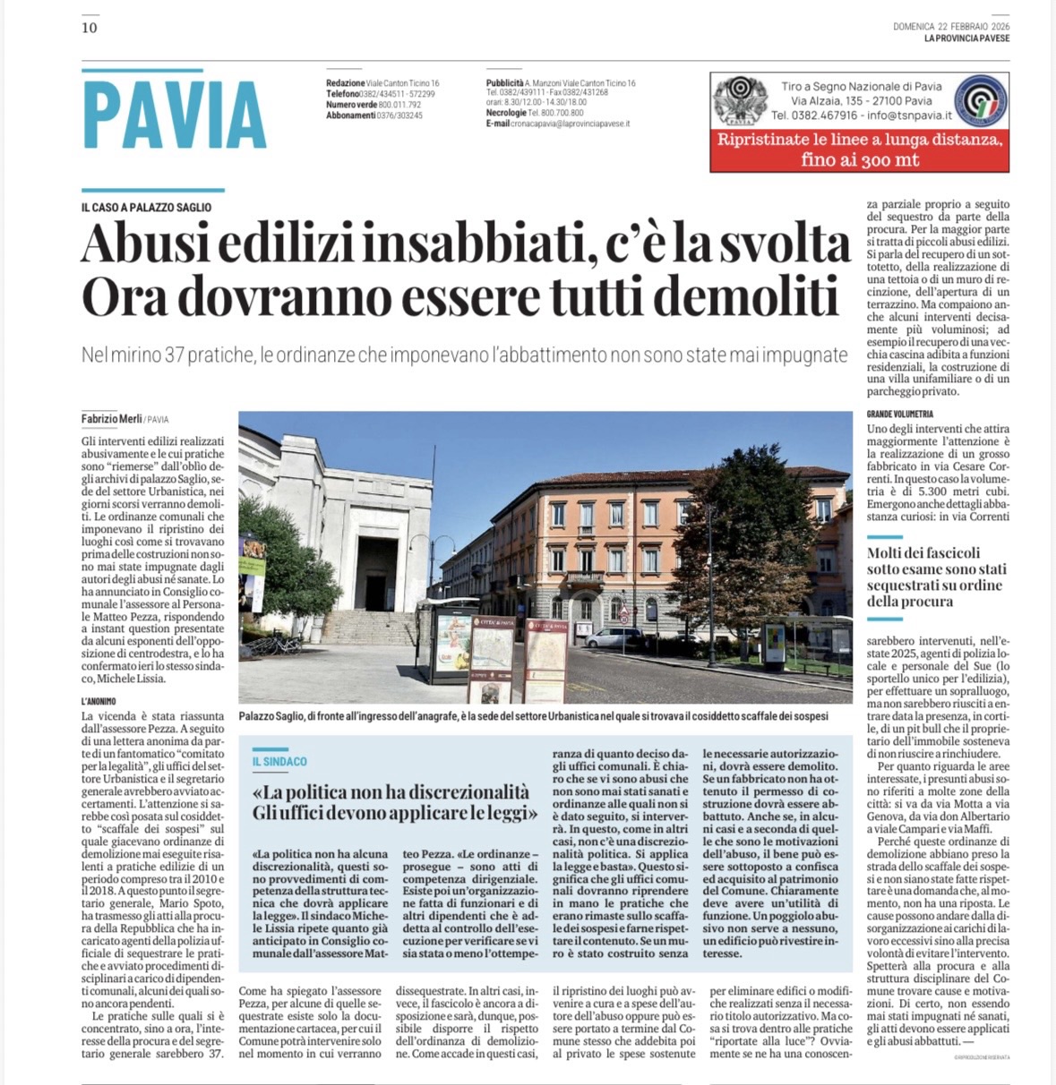La ruspa della legalità avanza inesorabilmente a Pavia.