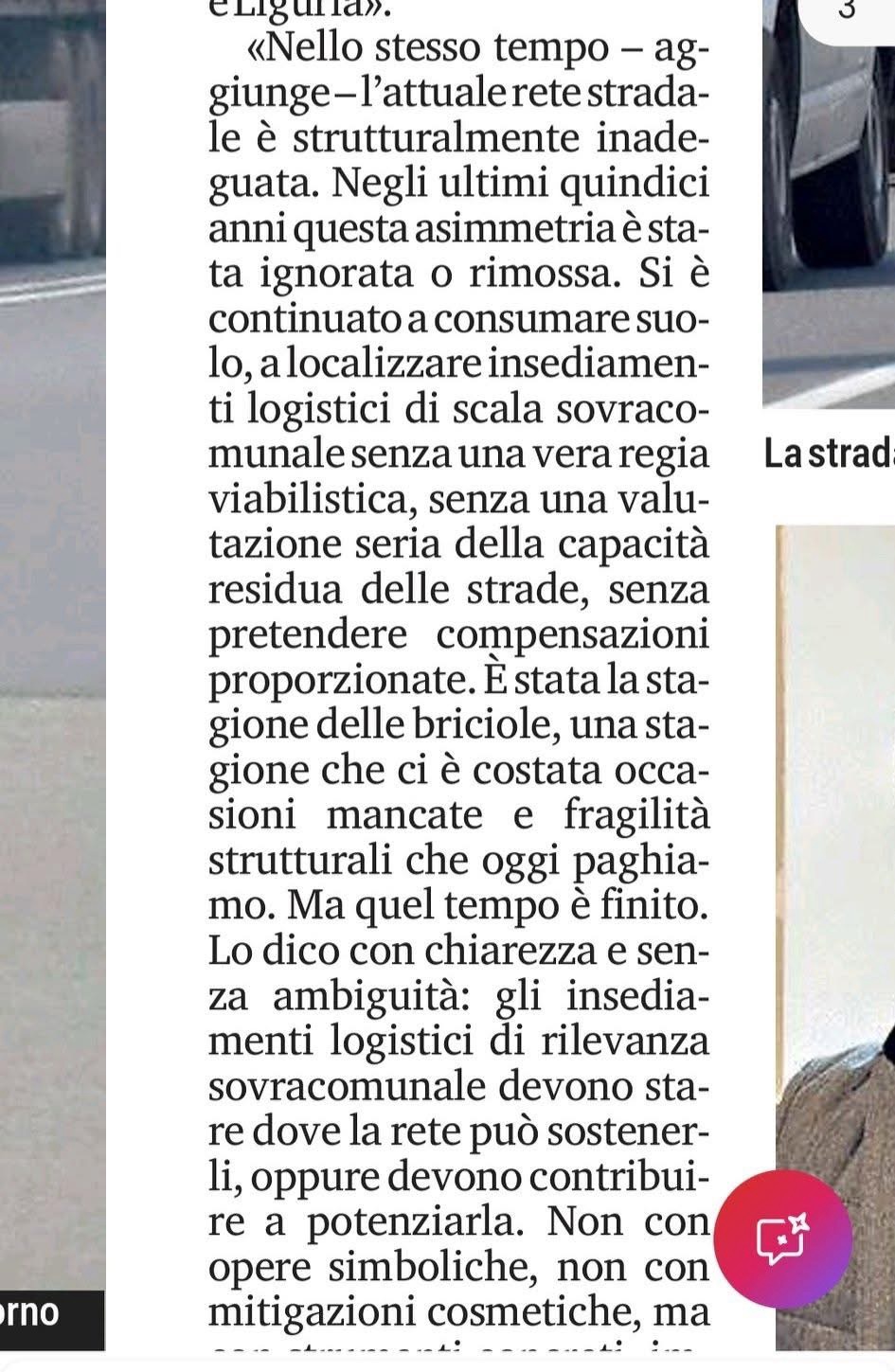 E poi, preoccupante l’apertura del tipo: basta che le logistiche mettano a posto le strade, si insedino in mezzo ai campi e tutto è ok.
