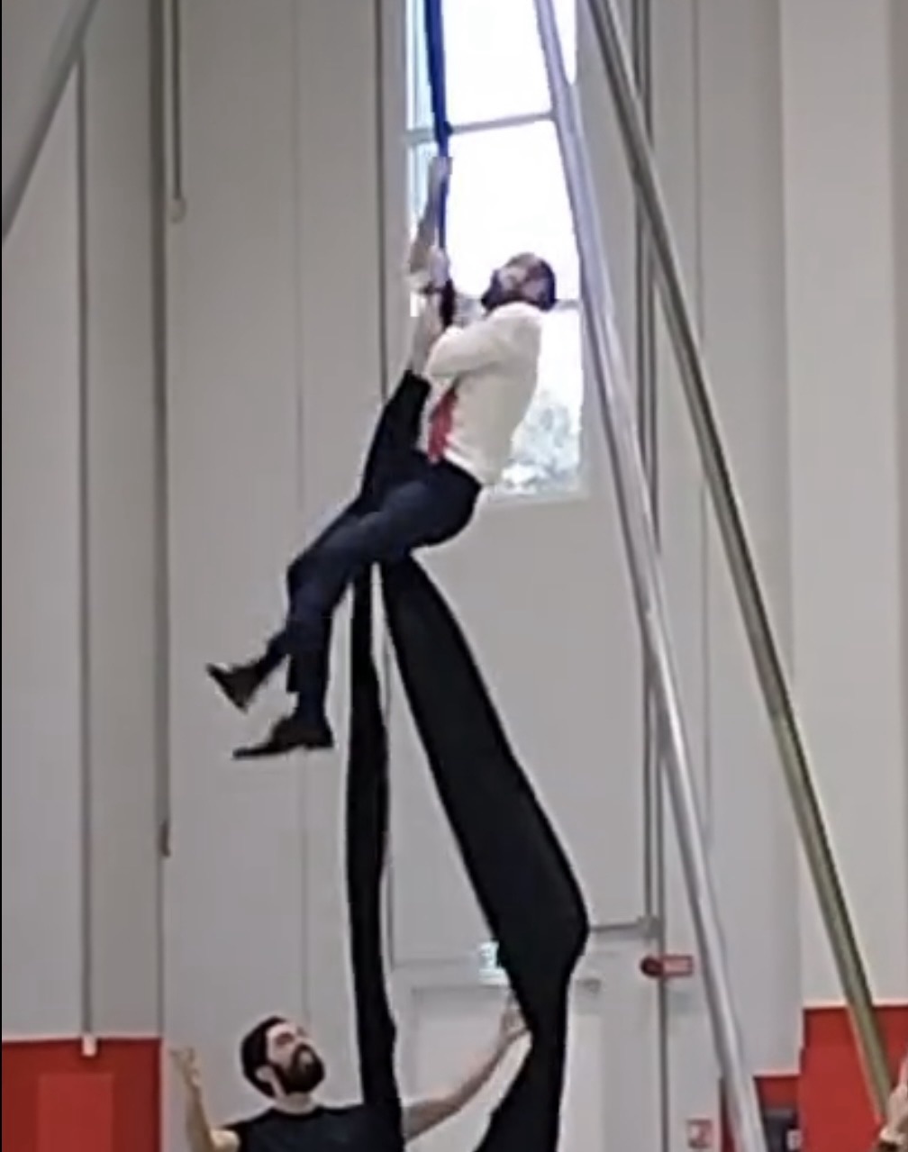 A Pavia l’inaugurazione della nuova palestra – costruita dalla giunta precedente, dettaglio mai secondario – si è trasformata in uno spettacolo circense imprevisto. Il sindaco, in camicia e cravatta, ha deciso di celebrare l’evento arrampicandosi su un lenzuolo come un ladro acrobata in fuga, tra lo stupore generale e qualche applauso imbarazzato.