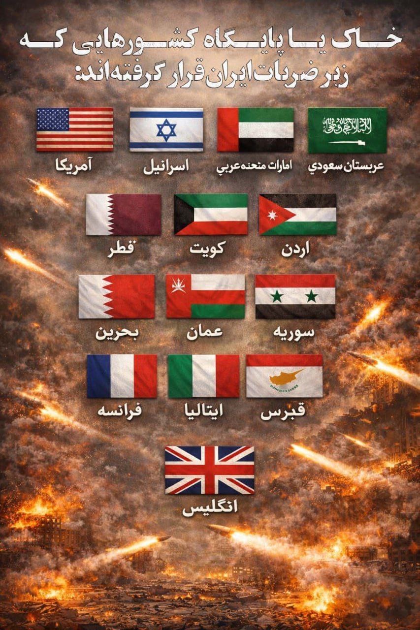 Gli iraniani pubblicano la lista dei Paesi i cui basi militari statunitensi sono stati attaccati dall’Iran.