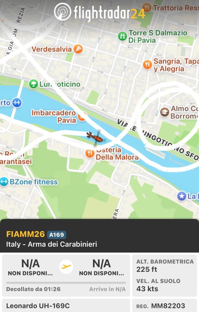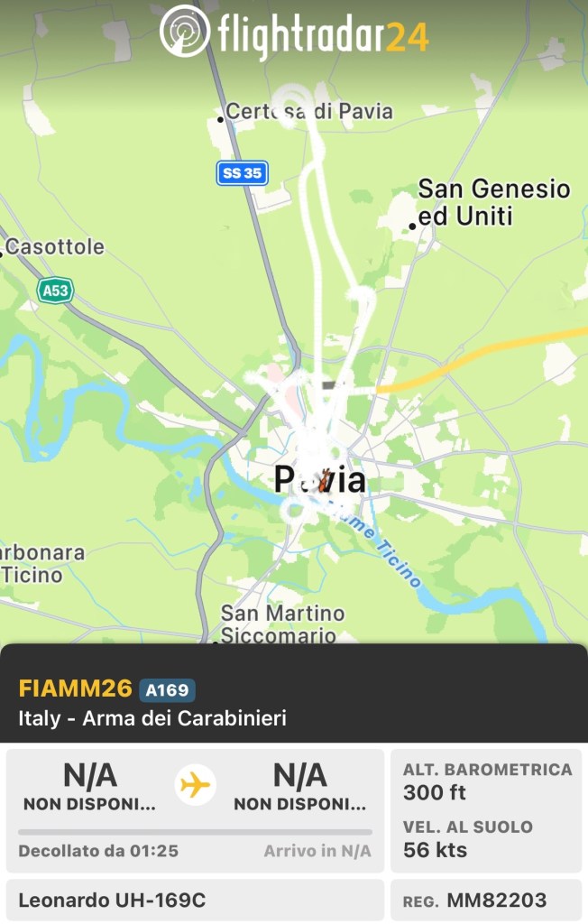 Proseguono i rilievi a bassa quota di Fiamma26 su Pavia e zone limitrofe.