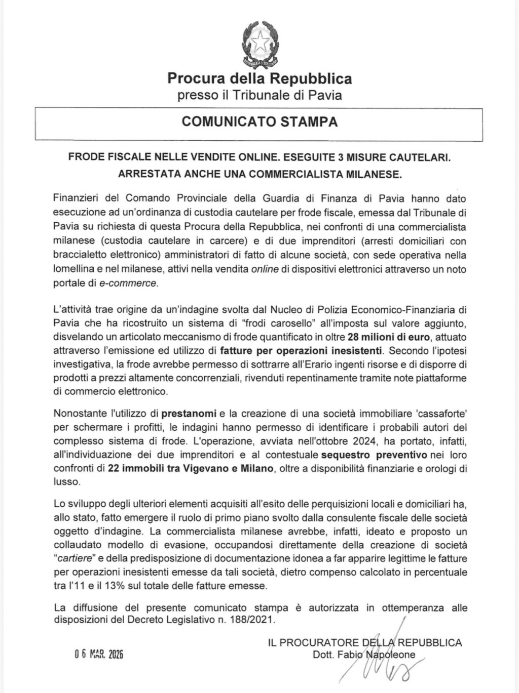 Comunicato stampa del Dottore