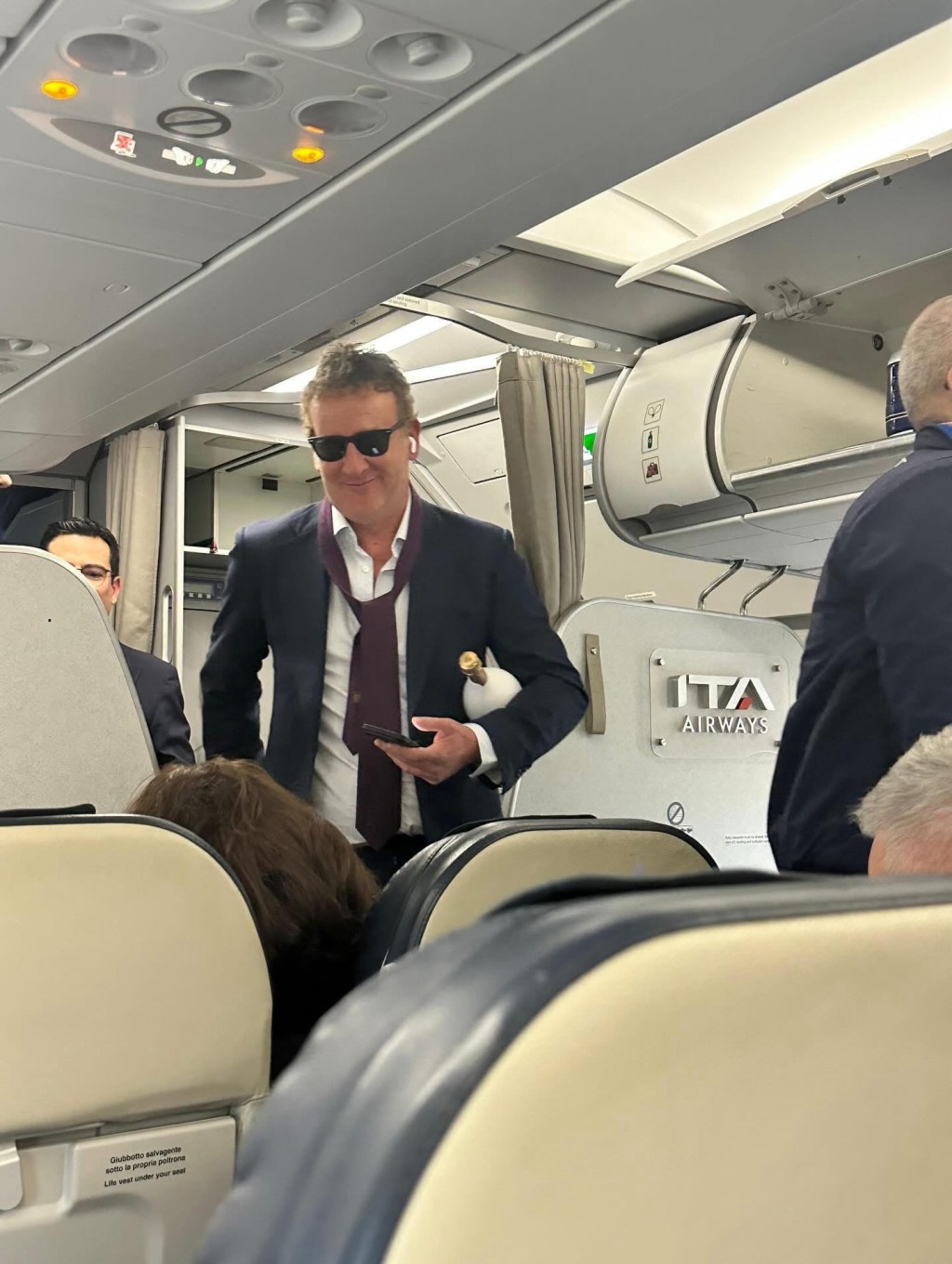 Che è arrivato sul Milano-Roma di mezzogiorno così agghindato.