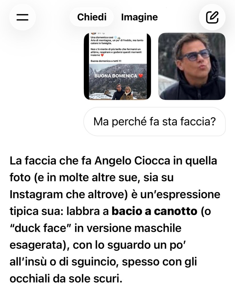 Se guardi il suo Instagram (@angelocioccaofficial) o i vecchi post su X, ne trovi a palate di foto così. È il suo modo di dire “buona domenica” con stile Ciocca.