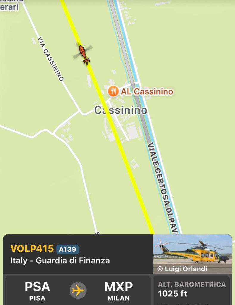 Mentre il nostro era a Rapallo a parlare di referendum, una Volpe era in volo dí trasferimento schedulato da Pisa a Milano.