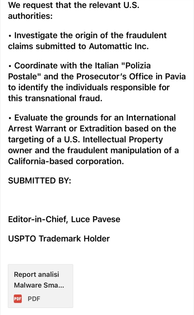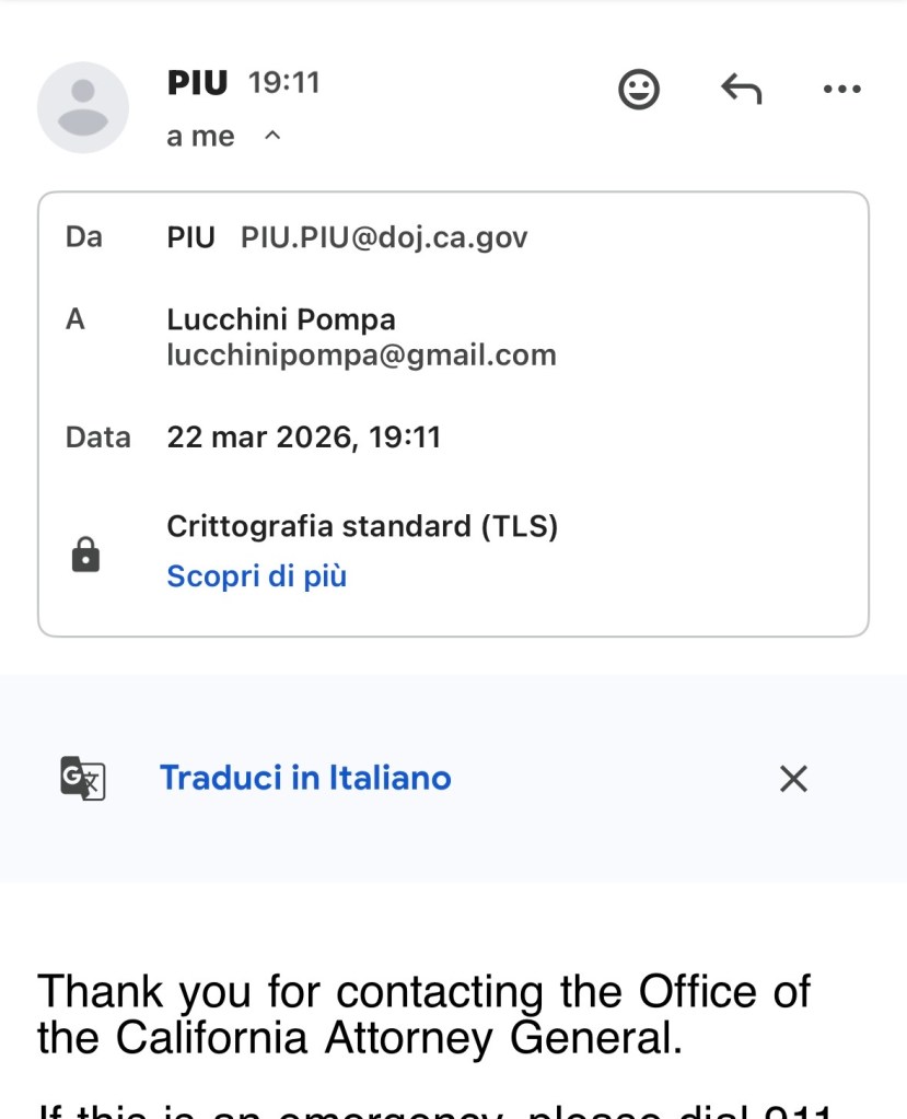 Il General Attorney della California e il Dipartimento di Stato Americano della Giustizia han risposto e ricevuto tutto.