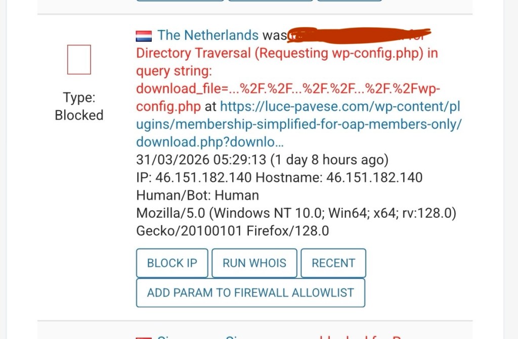 On April 1, 2026, at approximately 06:12:35 (UTC), the perimeter defense systems of the investigative journalism platform “Luce Pavese” intercepted a sophisticated cyber-attack. The intrusion attempt was categorized as a Path Traversal / Directory Traversal attack, specifically targeting the core configuration directory of the web server.